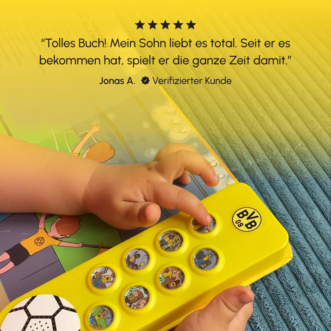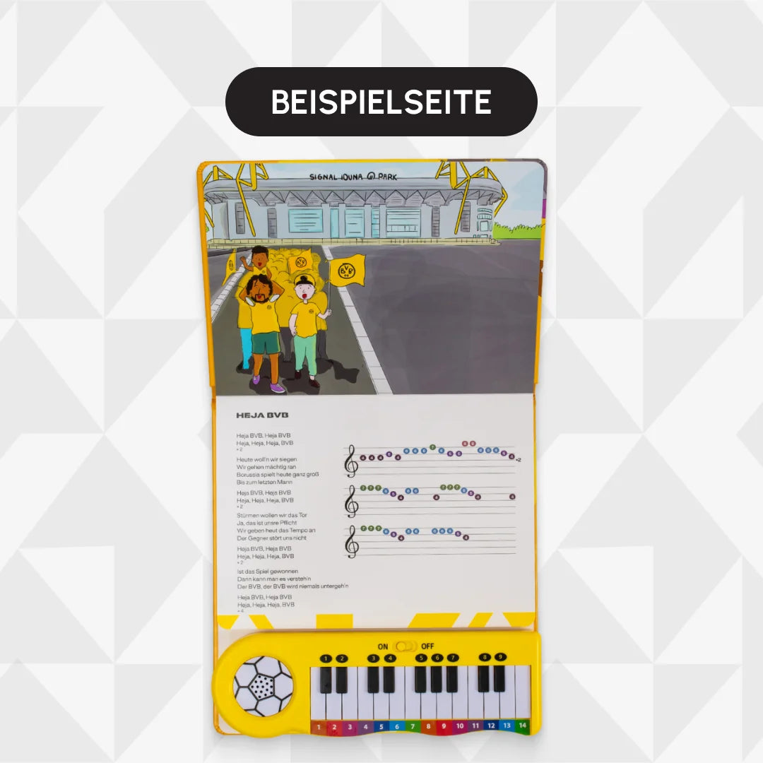 - BVB-Klangbuch für Fangesänge – Singen Sie die eigens für Kinder aufgenommenen BVB-Songs mit, die ihnen das Gefühl geben, am Spieltag mitzufiebern.