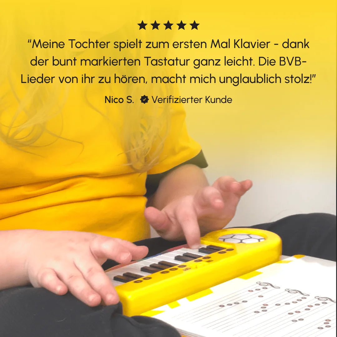 - BVB-Klavierbuch für Fangesänge – Mit diesem Klavierbuch für angehende Musiker können junge Fans die Lieblingslieder der Dortmunder spielen und ihre Unterstützung musikalisch untermalen.