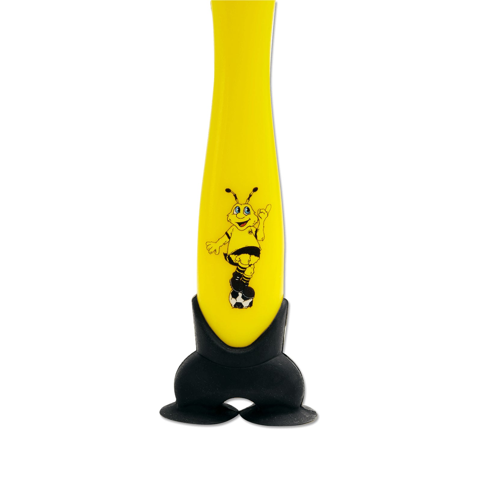 Gute Laune im Badezimmer. Damit die Fans von morgen bei jedem Tor strahlend Lächeln, ist gute Zahnpflege das A und O. Mit Maskottchen EMMA als Zahnbürste wird daraus ein Riesenspaß. Summ, summ, summ, oben, unten, links und rechts - schon sind die kleinen Zähne blankgeputzt. Die Zahnbürste aus Kunststoff im BVB-Design hat einen ergonomisch geformten Griff.